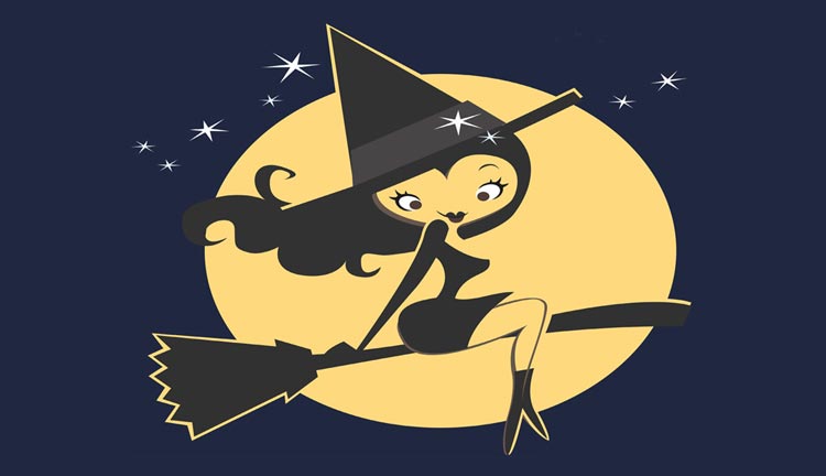 Cute Witch By The Moon & Stars