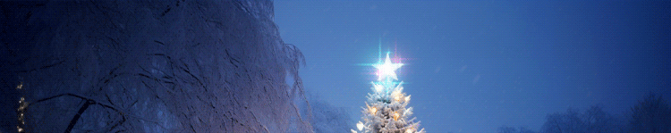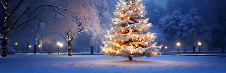 Animated: Elegant Christmas Tree Under Snowy Sky